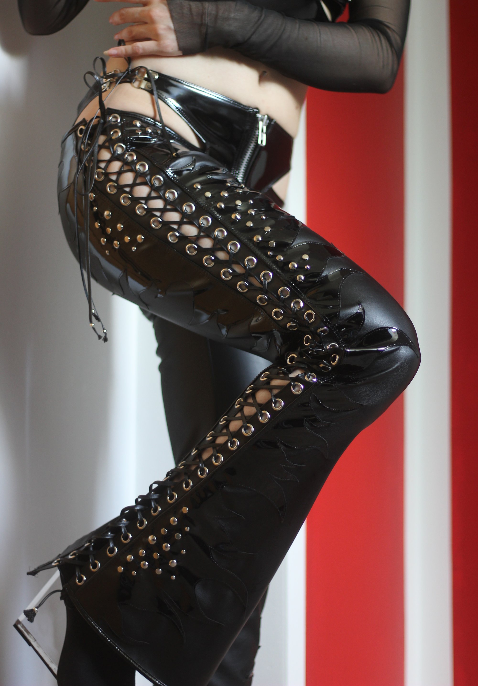 Sample Fauxleather lace up pants with flames (Size S-M)