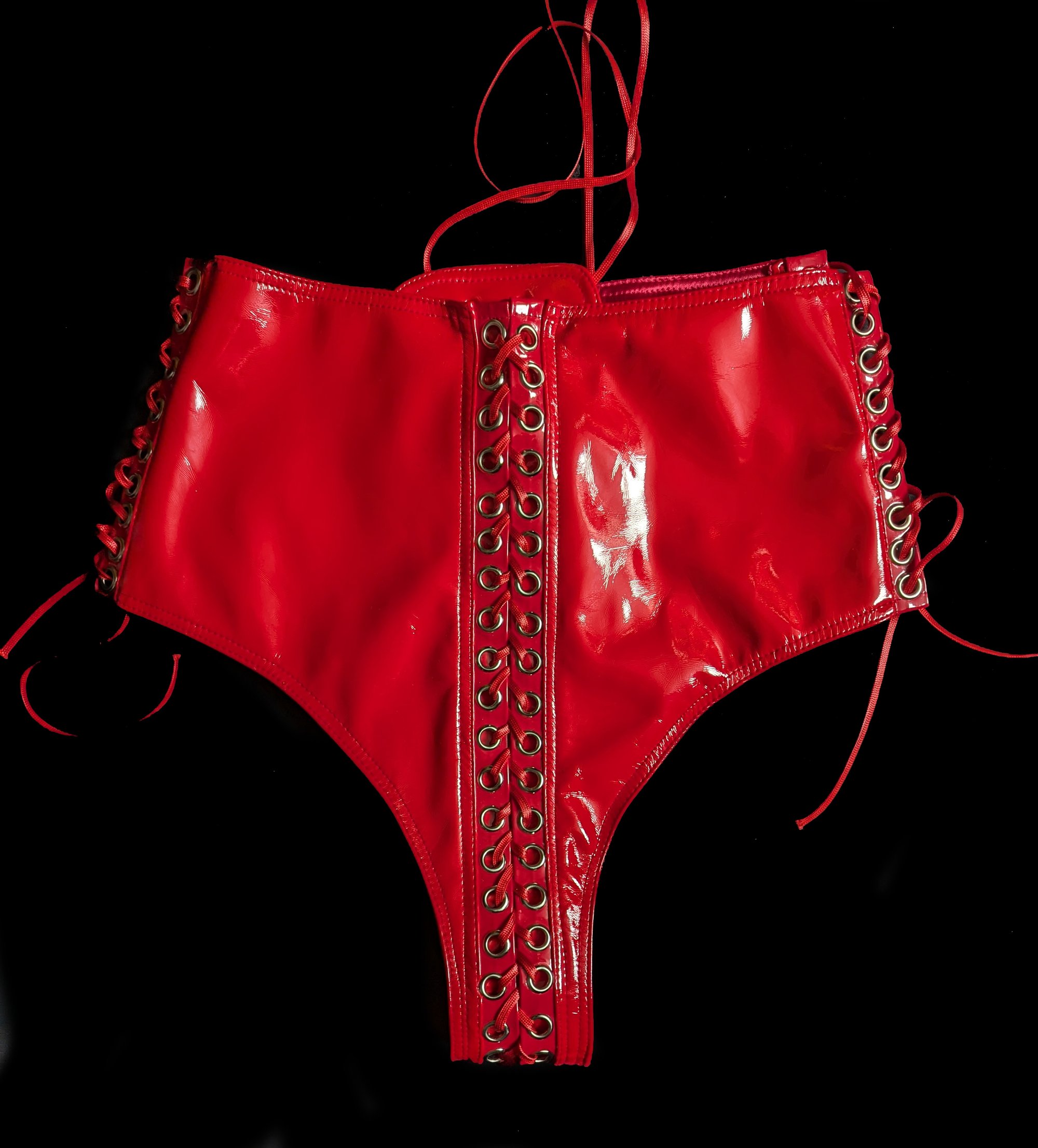 Sample Infinity Lace Up Hotpants in red PVC (Size M)