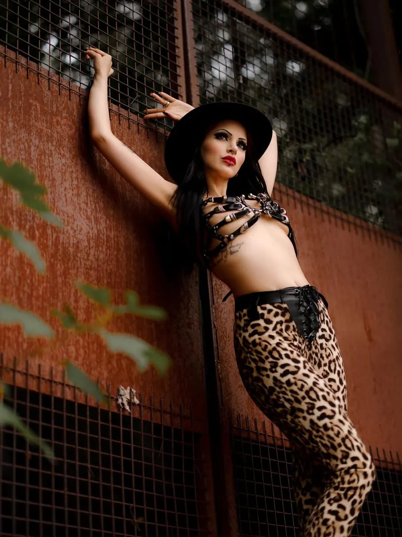 Crafted from mid-weight stretch fabric, they move effortlessly with you. The sand-colored leopard print adds a desert-inspired vibe, while the highly stretch faux leather waistband with belt loops ensures durability.