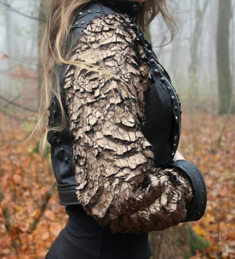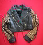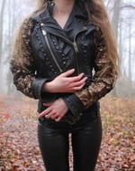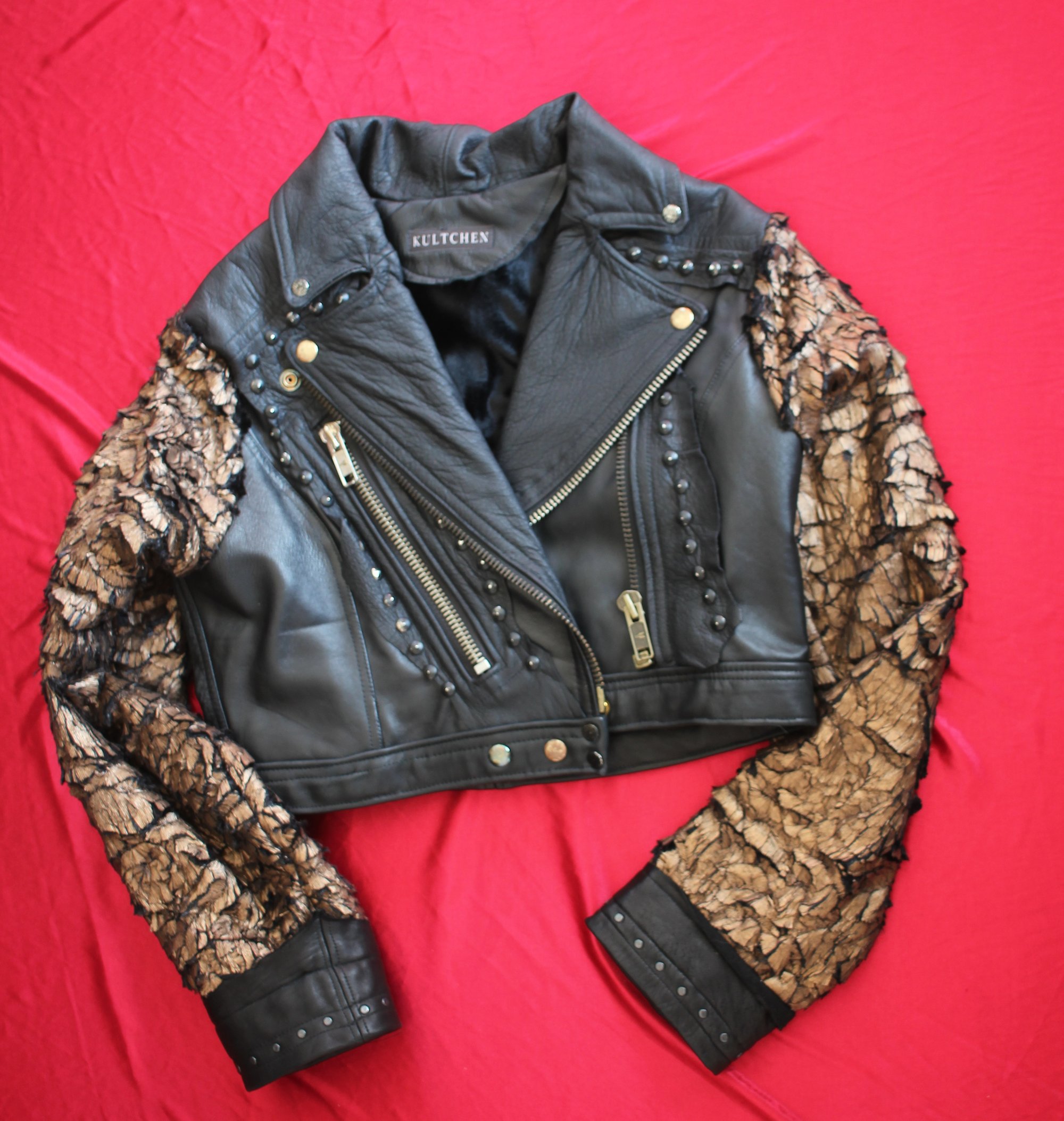 A very old piece from early Kultchen days. Made from soft black genuine leather with furry lining and gold fake fur sleeves. With decorative gold studding.
