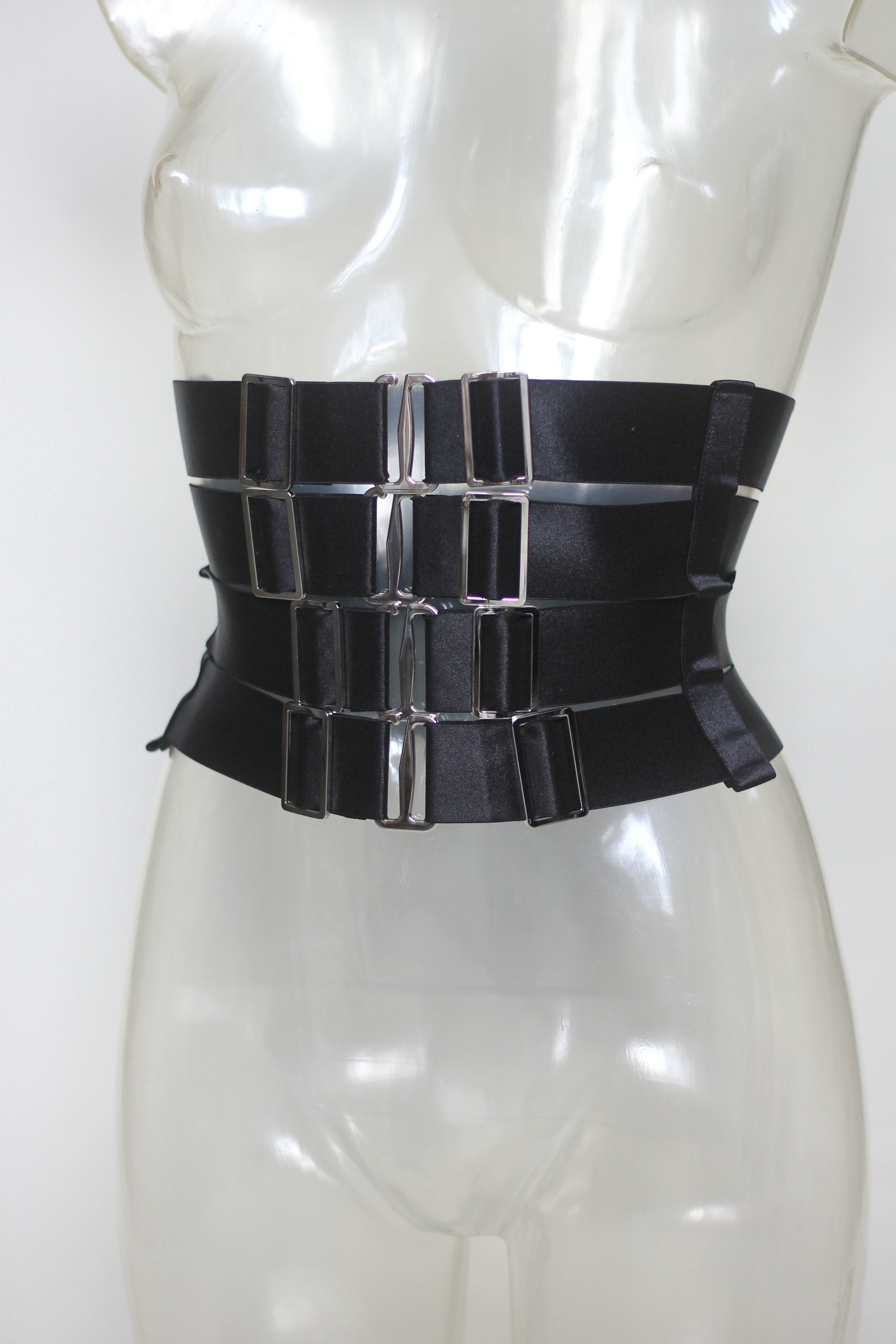 The 4-row Satin Elastic Waist Cincher features heavy-duty hooks and sliders for a snug yet comfortable fit around the waist. Designed for comfort, the cincher is fully adjustable to ensure a perfect fit. Available in silver, gunmetal, or gold hardware.