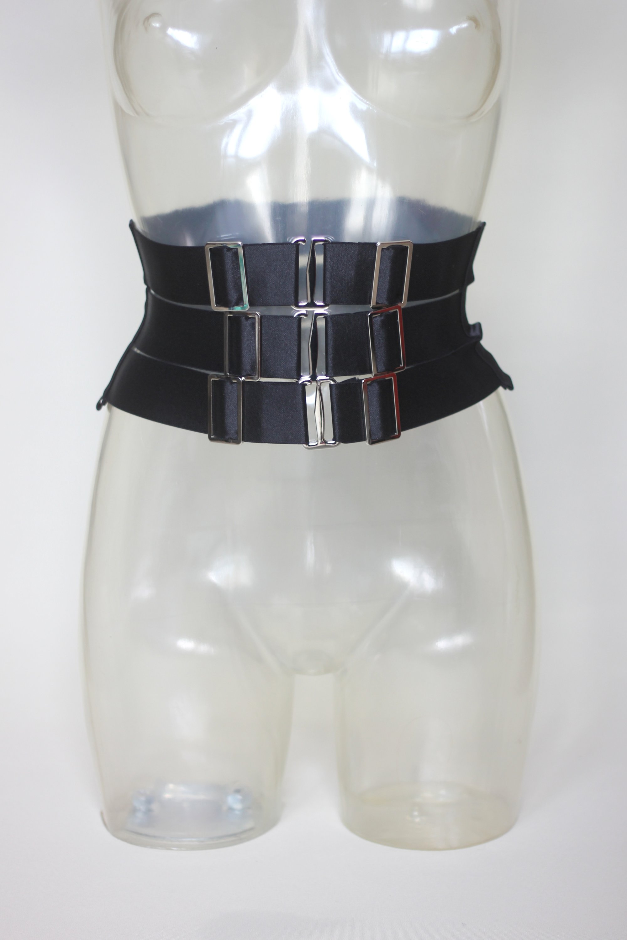 The 3-row Satin Elastic Waist Cincher features heavy-duty hooks and sliders for a snug yet comfortable fit around the waist. Designed for comfort, the cincher is fully adjustable to ensure a perfect fit. Available in silver, gunmetal, or gold hardware.