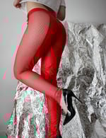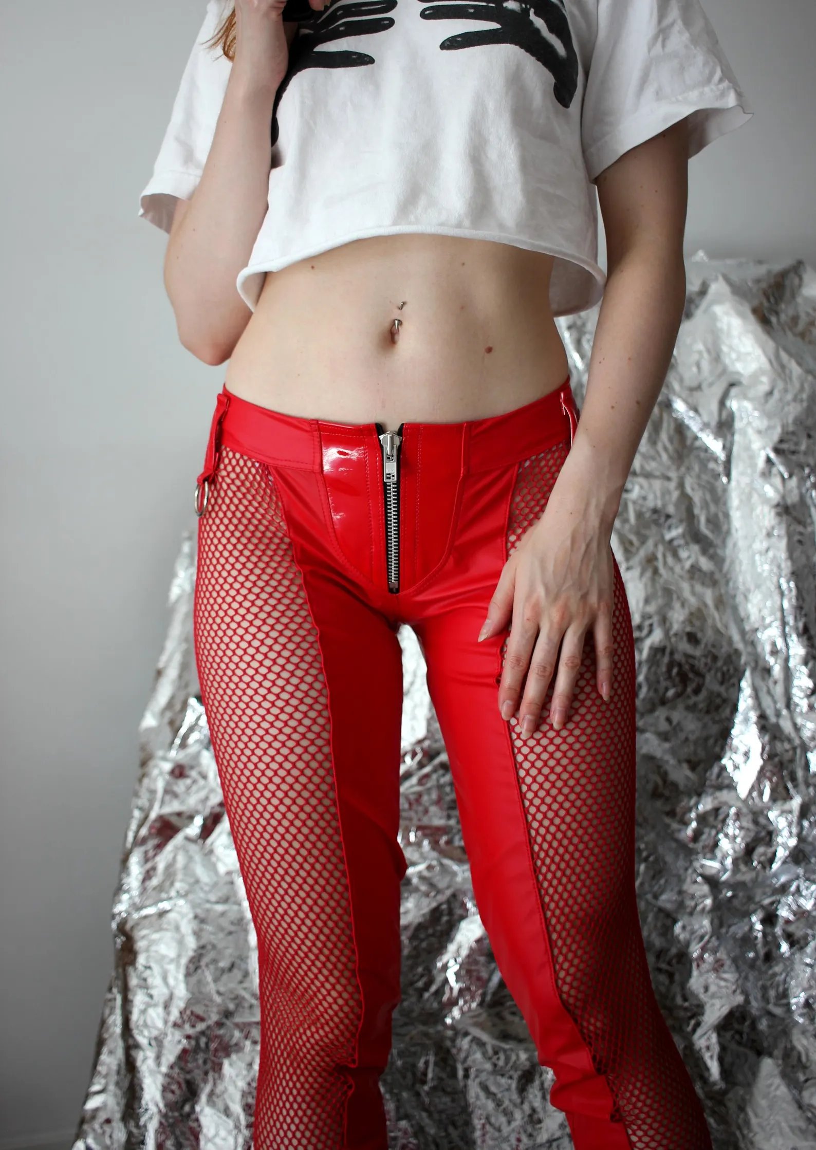 Mid-waisted Heavy Zipper Pants, crafted from stunning matte red stretch fabric.